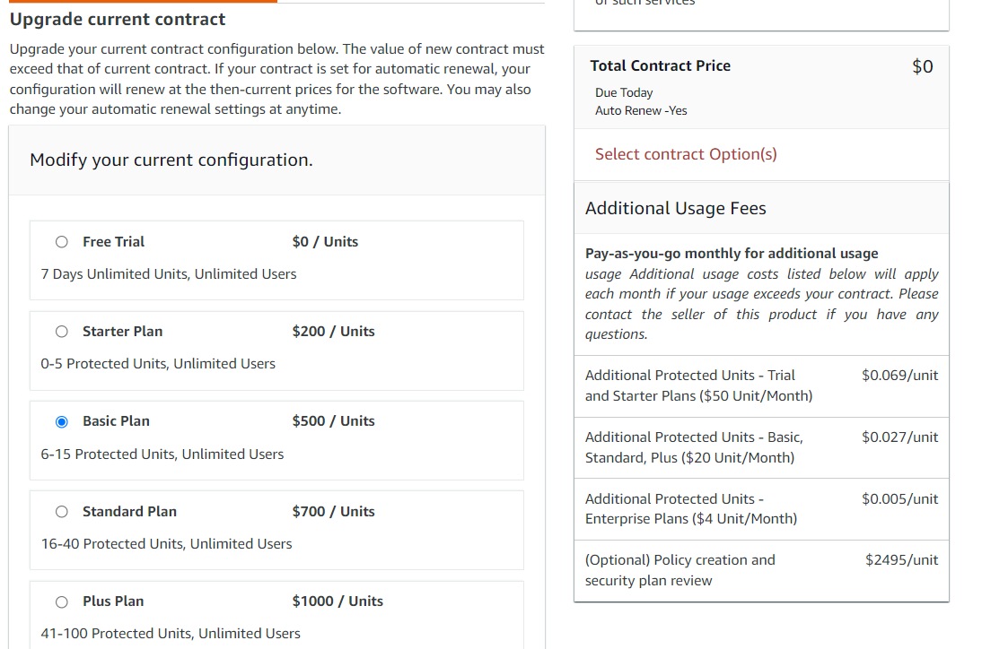 Each plan will be allocated a certain number of protected units, if your organization goes over this allocation, you will be billed overage based on your plan. Your team can upgrade your plan to a higher plan/tier of protected units at anytime.