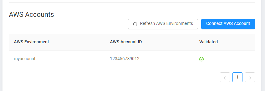 3. Under the “AWS Accounts” section, click the “Refresh AWS Environments” to see the current connected accounts for monitoring.