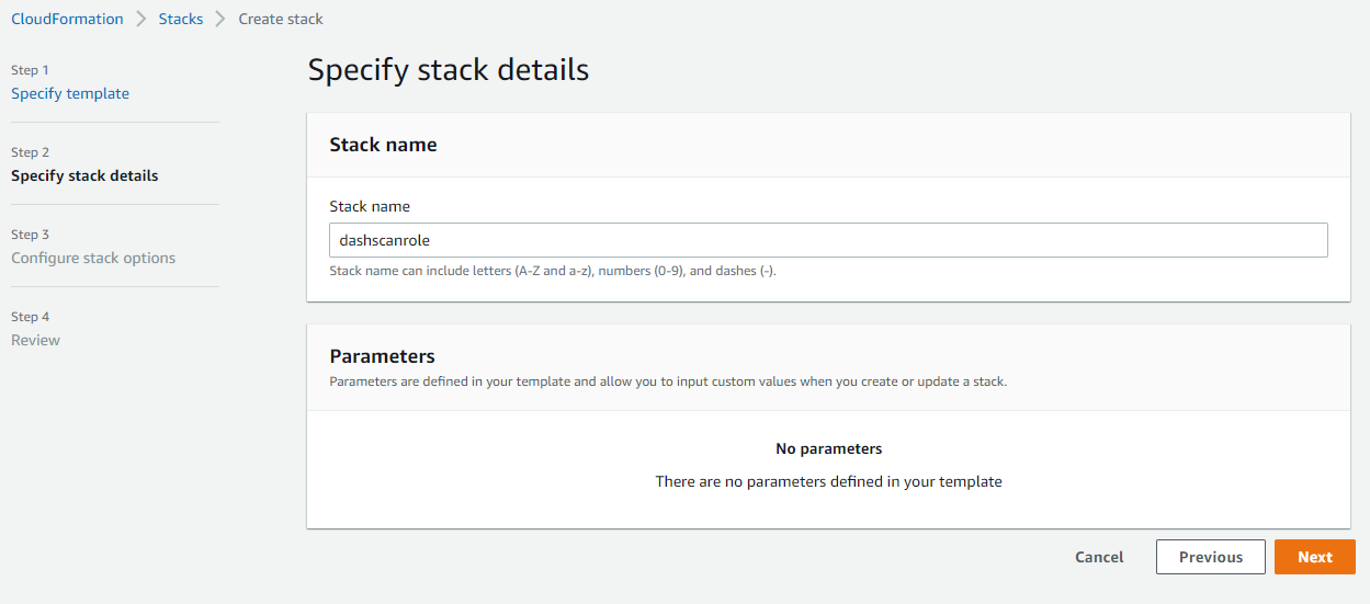 You will be taken to AWS where you will need to login and grant Dash permission to scan this environment.