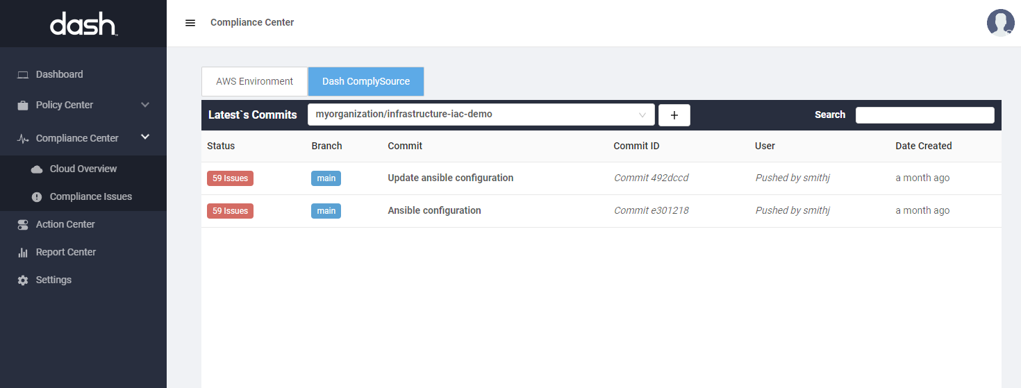 You will need to connect a version control repository to Dash ComplySource to start scanning of source code and Infrastructure-as-Code (IaC) files.