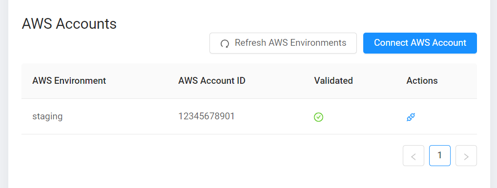 You can click the ‘Refresh AWS Environments’ to see updates to the connected accounts. After waiting a few seconds, you will now see that the environment if now validated. This means that scans are being ran on this environment.