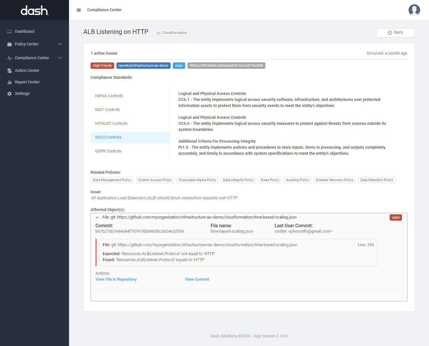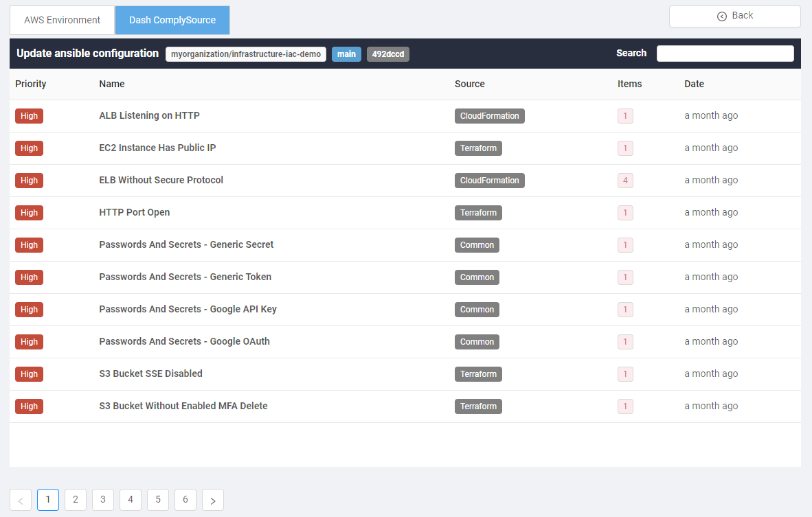 Dash ComplySource is new Dash scanning service that enables teams to detect configuration and compliance issues across source code repositories. Security teams can connect version control systems (including Github, GitLab, and Bitbucket) to scan and find potential security issues across source code and infrastructure-as-code (IaC) files before they reach production.