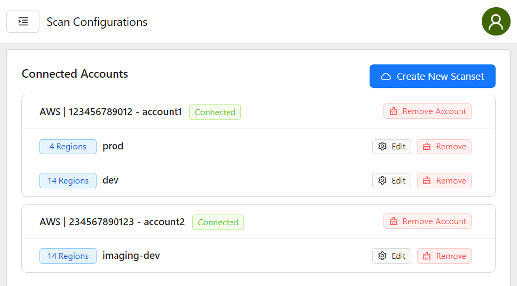2. Connect New Account - To create a new Scanset for a different AWS account